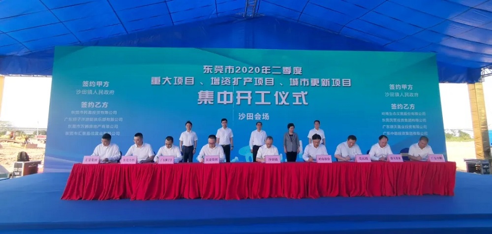 【香港商報網訊】記者 冷運軍 報導:日前,廣東省東莞市二季度重大項目、增資擴產項目、城市更新項目動工儀式(沙田會場)在沙田鎮舉行。當天,沙田鎮與生益科技覆銅板生產項目、菜鳥智能物流骨幹網華南核心節點項目、嶺南生態文旅城、楊公洲片區改造項目等16個重大項目簽訂投資合作協議,意向總投資額達903.8億元,項目涉及精細化工、智能製造、城市更新、跨境電商、旅遊文化等多個領域,為後疫情時期沙田經濟發展注入「新動能」。