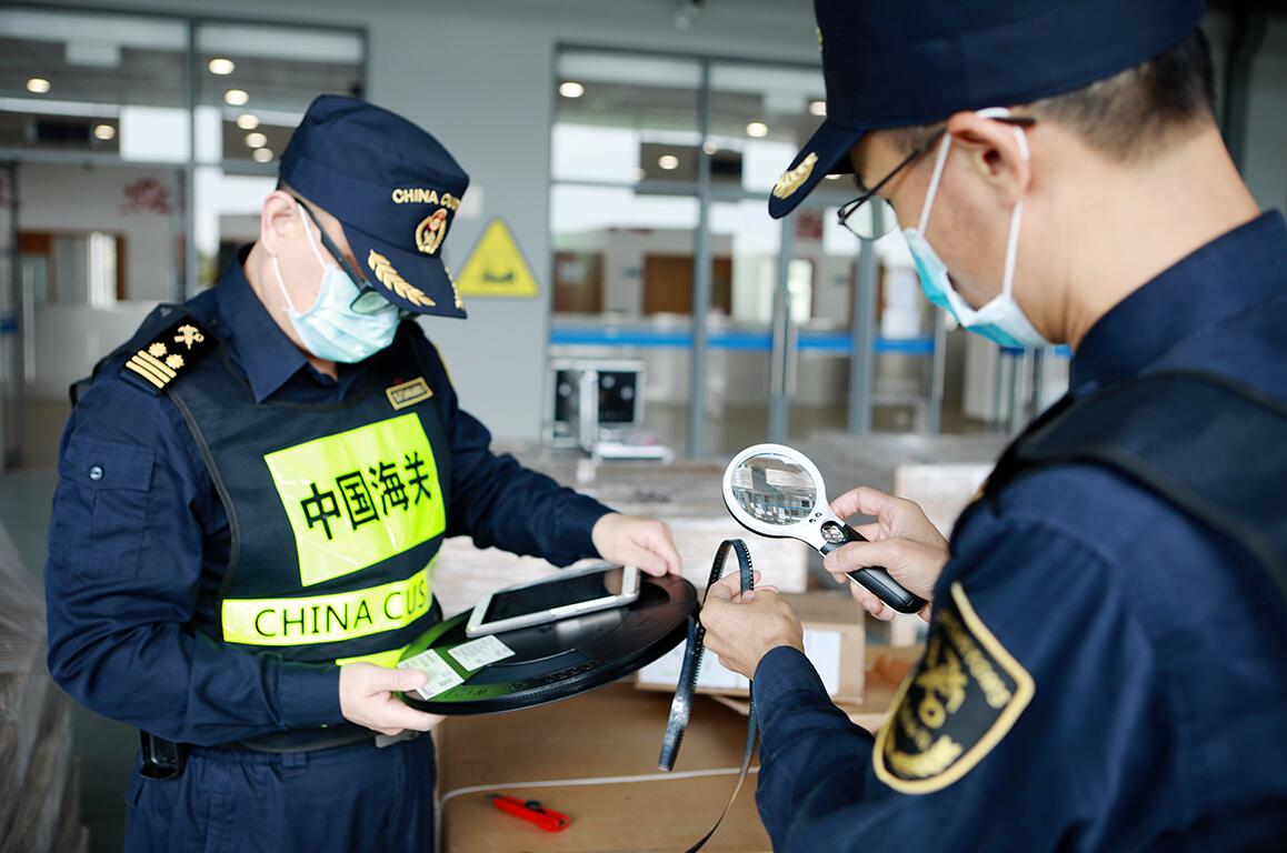 海關關員查驗貨物(俞波攝)
