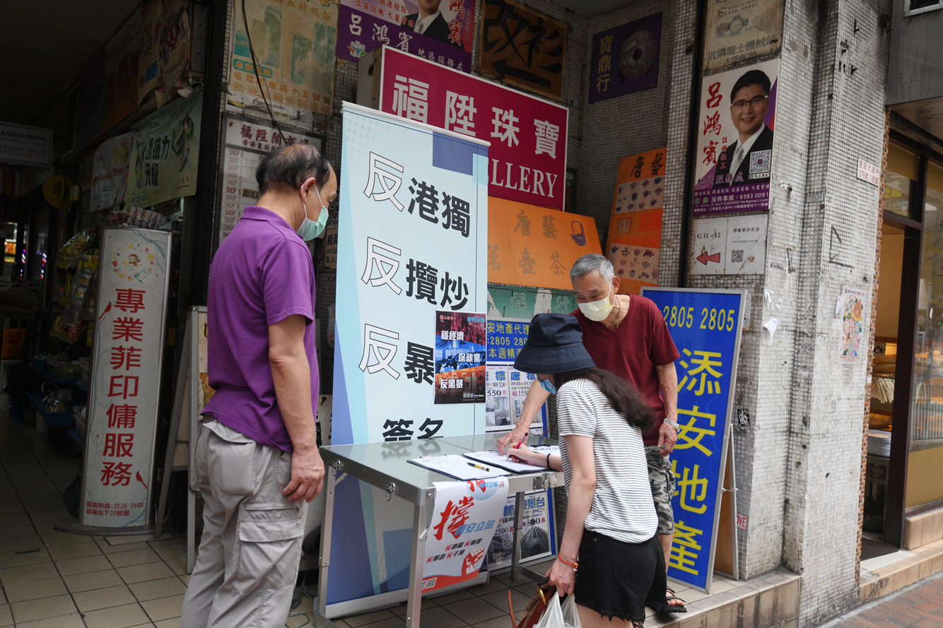 市民在上環撐國安立法街站簽名支持。記者蔡啟文攝