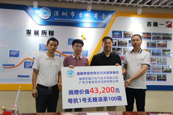 「新冠肺炎疫情發生以來,『粵抗1號』涼茶,在廣東地區得到很好的預防療效,希望可以有效的幫助家鄉的抗疫一線。」作為此次捐贈方吉林商會常務理事單位、深圳市嘉力電氣技術有限公司總經理姜海峰與廣東萬春堂醫藥連鎖有限公司董事長歐道明介紹,『粵抗1號』組方來源是廣東77位瘟病學、中醫肺病、中醫危重、中藥學等領域中醫藥專家,組建的廣州市新冠肺炎中醫藥防控專家組。由組長王新華教授(廣州醫科大學校長)對外發佈。請家鄉一線工作者放心食用。
