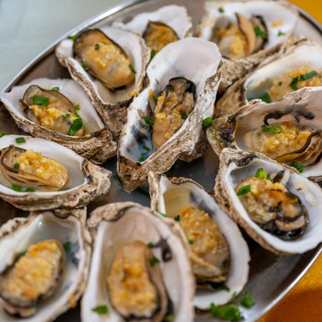 廣東有四大蠔產區,其中陽西縣的程村蠔產量最大。程村蠔被稱為「海洋牛奶」,個頭大,色潔白,味道鮮甜,殊勝他處。在陽江,生蠔的吃法多種多樣,生吃、鹽焗、炭烤、吊燒……做一桌全蠔宴而綽綽有餘。