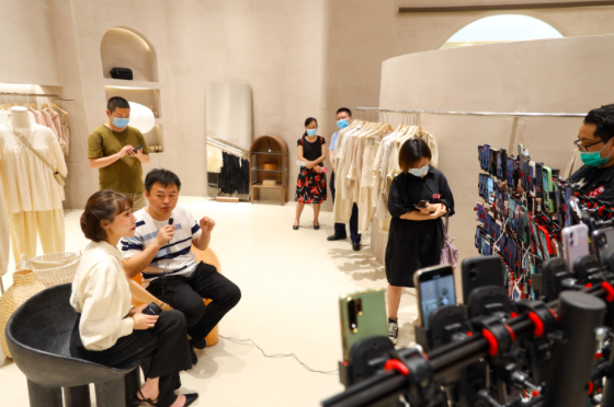 啟動儀式後,廣州ARAapM服裝城項目執行總經理高學清接受記者採訪時介紹,該市場主打原創女裝批發為主,疫情爆發前,該市場500戶商家中有300多戶參與直播,線上銷售額總體佔比三成。 「疫情期間,商戶都紛紛開通直播帳號,商戶的賣貨更依賴線上直播。受疫情影響,為避免壓貨,大家都選擇少量化生產,由此帶來成本增加,加上人工成本的增加,給服裝行業帶來不小的挑戰,所以,直播還是給了批發行業很好的展示窗口,據統計,線上銷售額佔比六七成。而隨着疫情防控的常態化,線上銷售比例開始回落,如今又回落至五成。」 高學清說。