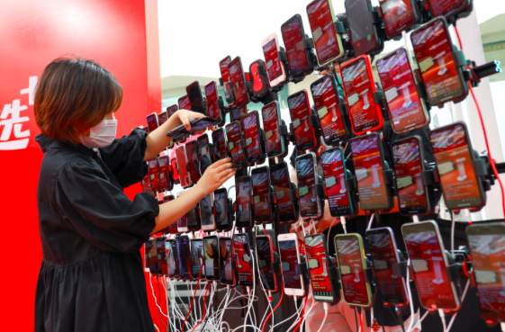 商家紛紛在直播營造新業態濃厚氛圍。(徐紅攝)