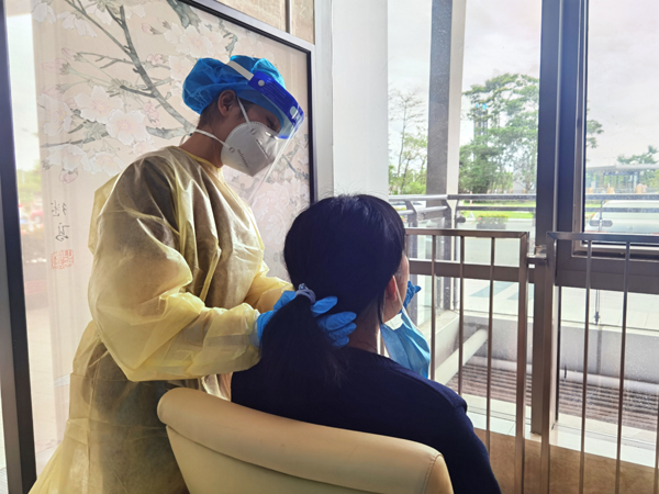 圖為醫護人員為患者進行核酸標本採樣工作。