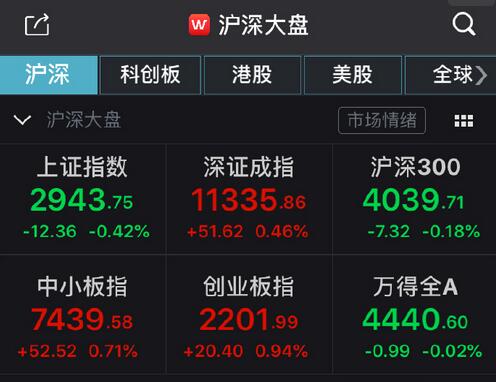 【香港商报网讯】两市开盘涨跌不一,随后走势继续分化,沪指维持绿盘震荡,创业板指震荡拉升。午后,创业板指一度涨逾1%,成功收复2200点整数关口。临近收盘,创业板指涨幅收窄。截至收盘,沪指跌0.42%,深成指涨0.46%,创业板指涨0.94%。