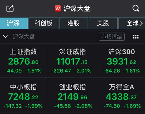 【香港商报网讯】受隔夜欧美股市暴跌影响,A股两市集体低开,沪指跌1.51%,深成指跌2.01%,创业板指跌2.08%。