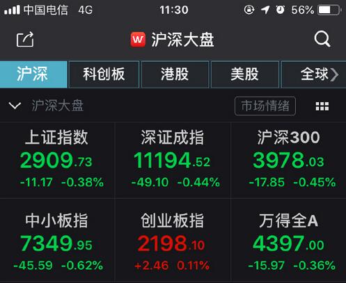 【香港商报网讯】受隔夜欧美股市暴跌影响,A股两市集体跳空低开,随后,两市震荡拉升,此前一度跌超2%的创业板指率先翻红。截至发稿,沪指报2909.73点,跌0.38%;深成指报11194.52点,跌0.44%;创指报2198.10点,涨0.11%。