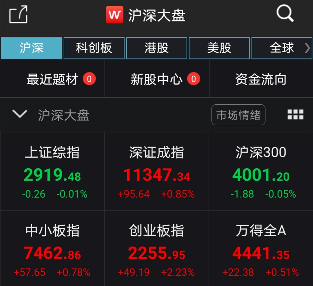 【香港商报网讯】周一(6月15日),A股三大股指开盘涨跌不一,随后盘中一度全部翻红,创业板指高开高走。截至午间收盘,上证指数跌0.01%,深证成指涨0.85%,创业板指涨2.23%。