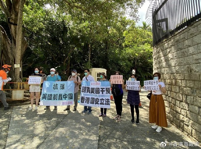 本土反独阵线到美国驻港领事馆抗议美国制裁中国,谴责美国干预香港国安立法。(记者 李铭欣)
