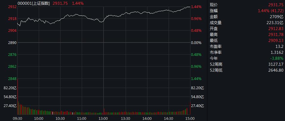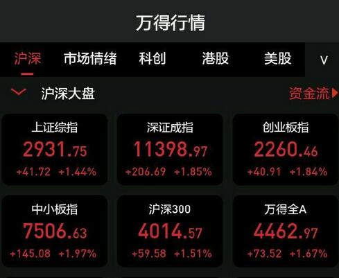【香港商报网讯】周二(6月16日),两市全天高开高走,三大股指均涨超1%。截至收盘,沪指涨1.44%,深证成指涨1.85%,创业板指涨1.84%。