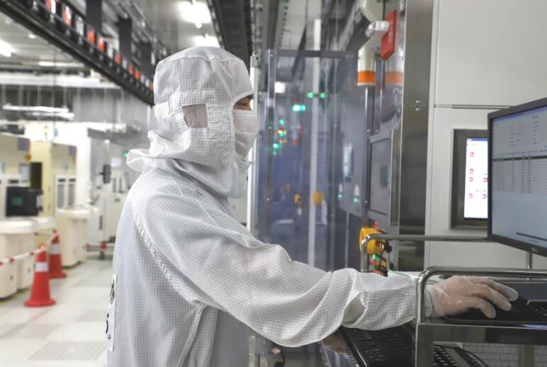 圖為廣州粵芯半導體有限公司生產車間,工人正在加足馬力生產。