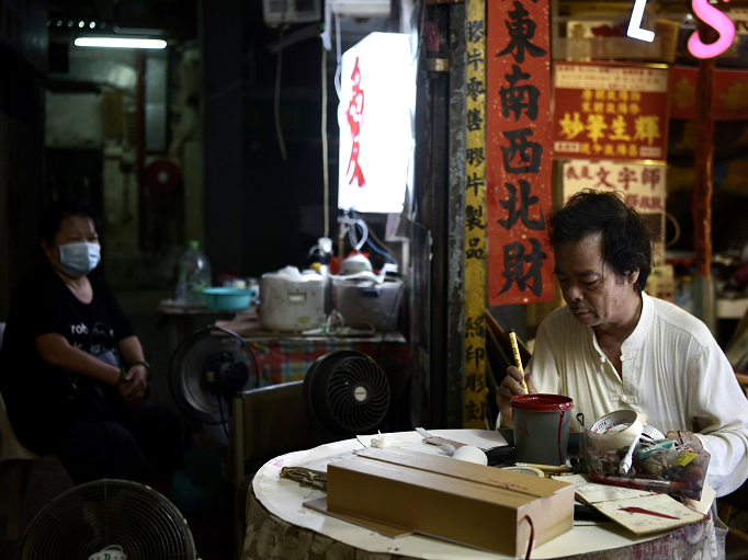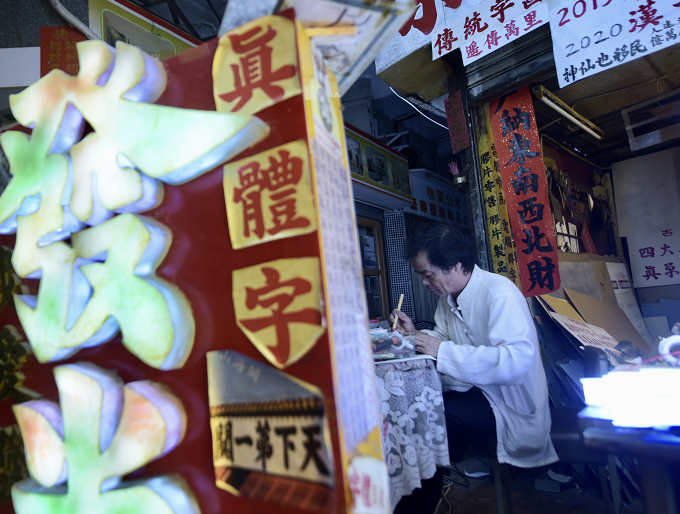 【香港商報網訊】據中新社報道,香港北角皇都戲院于1952年落成,是香港僅存的單幢式戲院,現時戲院地面的皇都商場內十室九空,而商場內有一間製作招牌的“京華招牌”店鋪却燈火通明。店主歐陽昌30多年來以自創的“真體字”爲店鋪寫招牌、製作燈箱等,傳承中華文化。(圖源:中新社)
