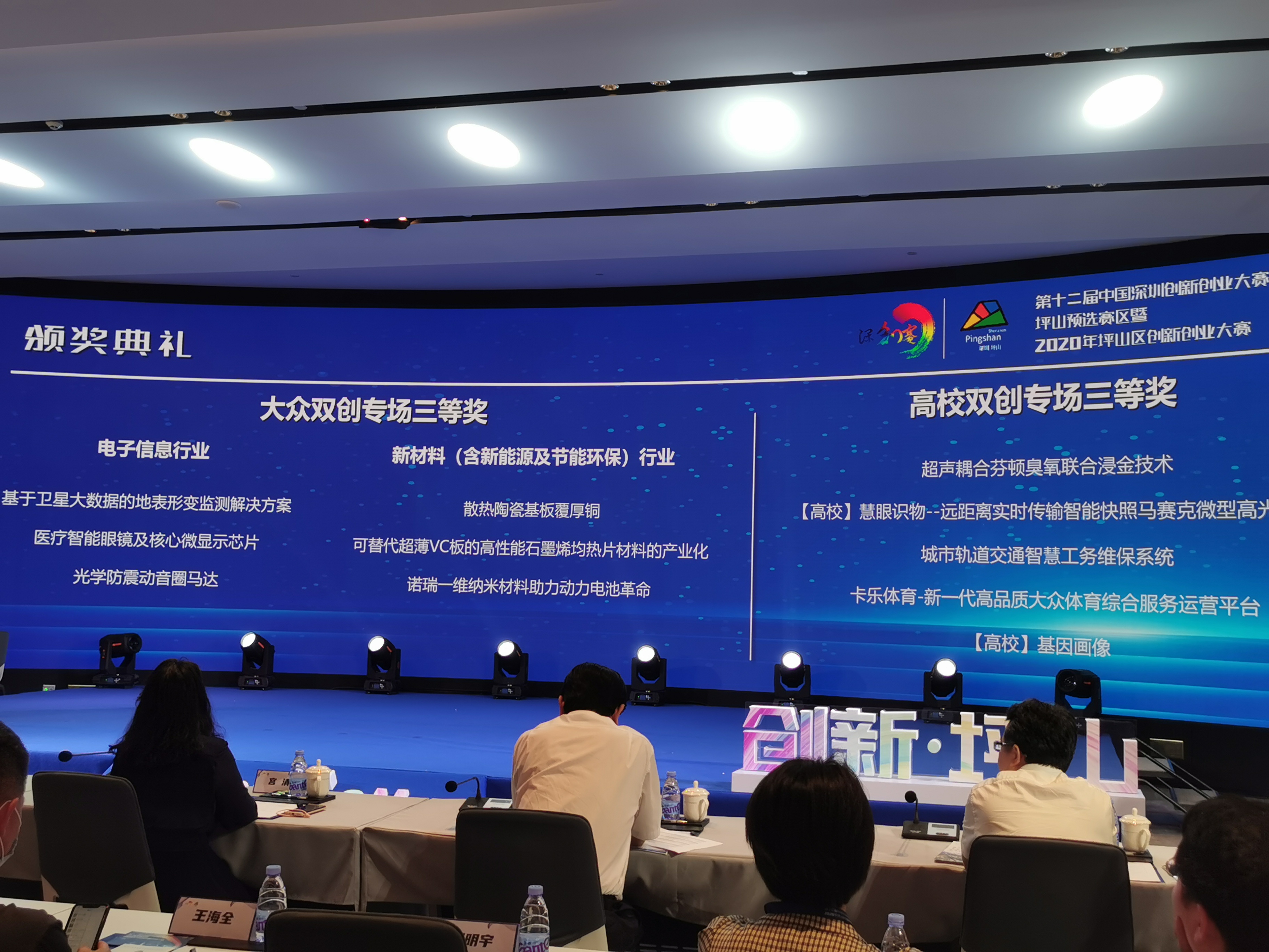 決賽採用「5分鐘項目路演+5分鐘評委問答」的形式,75個晉級優秀項目按大眾雙創專場(5大行業)、高校雙創專場分別展開比拼角逐。經過緊張激烈的路演展示、問答評分,深創賽坪山預選賽區評選結果終於出爐。「增材製造中金屬粉末高效製備關鍵技術及設備」「JRF103」、「CombCure癌症精準智能平台」「摩然科技半導體技術產業化項目」等獲得大賽一等獎。