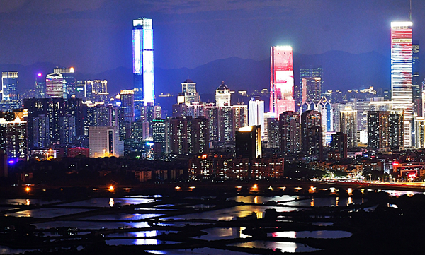 以往很多香港市民會在假日到深圳吃喝玩樂,現在受疫情影响,加上大部分的關口已關閉,而且到深圳和回港都要隔離14日(有人笑言:雖然港深只是一河之隔,但來回就要28日),於是去深圳的人少了很多,現在只能隔岸觀賞深圳五光十色的夜景。(记者馮瀚文攝於馬草籠)