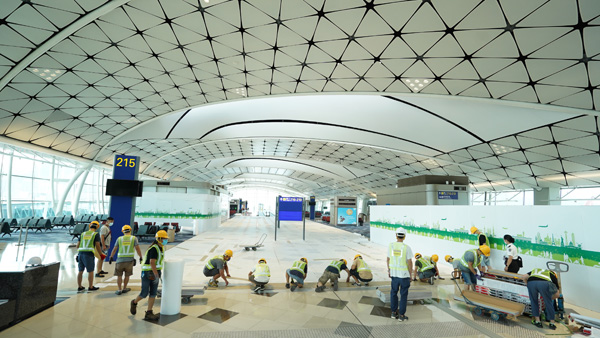 中場客運大樓目前沒有航班運作,臨時樣本採集中心設於樓面面積約33400平方米的中場客運大樓離港層。在兩星期內,大樓內的座位、登機閘口、地毯,被換成裝有新地板的樣本收集間、檢疫安排櫃位及寬敞的等候範圍。這次的改裝工程,全賴機場同業及相關政府部門超過250人不辭勞苦地協力為中心運作做好準備。(記者 何家驊)