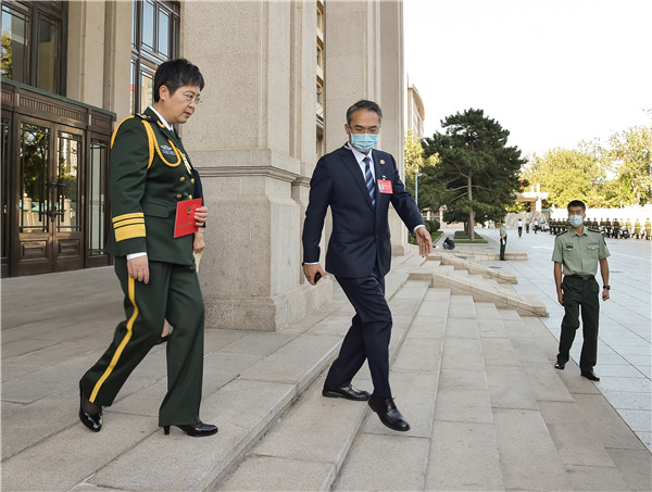 9月8日上午,「共和国勋章」获得者鍾南山,「人民英雄」国家荣誉称号获得者张定宇乘坐礼宾车前往人民大会堂。