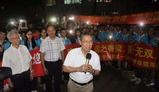 9月8日,中国举行全国抗击新冠肺炎疫情表彰大会,中国工程院院士、著名呼吸病学专家鍾南山被授予「共和国勋章」。据广州日报报道,当晚,广州医科大学越秀校区的同学们自发聚集在学校图书馆门口,高举手机灯光,迎接鍾南山归来。