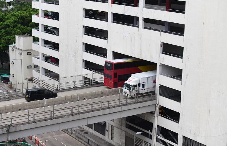 有63年歷史的油麻地停車場,爲了配合中九龍幹綫發展,將於今年11月起逐步停用,計劃明年拆卸。其中停車場最大特色, 是中間第二層至第五層是中空設計,由加士居道天橋以穿牆形式, 讓車輛駛過入內。一代港人記憶中的「穿墻」奇景將成爲歷史。(崔俊良攝)