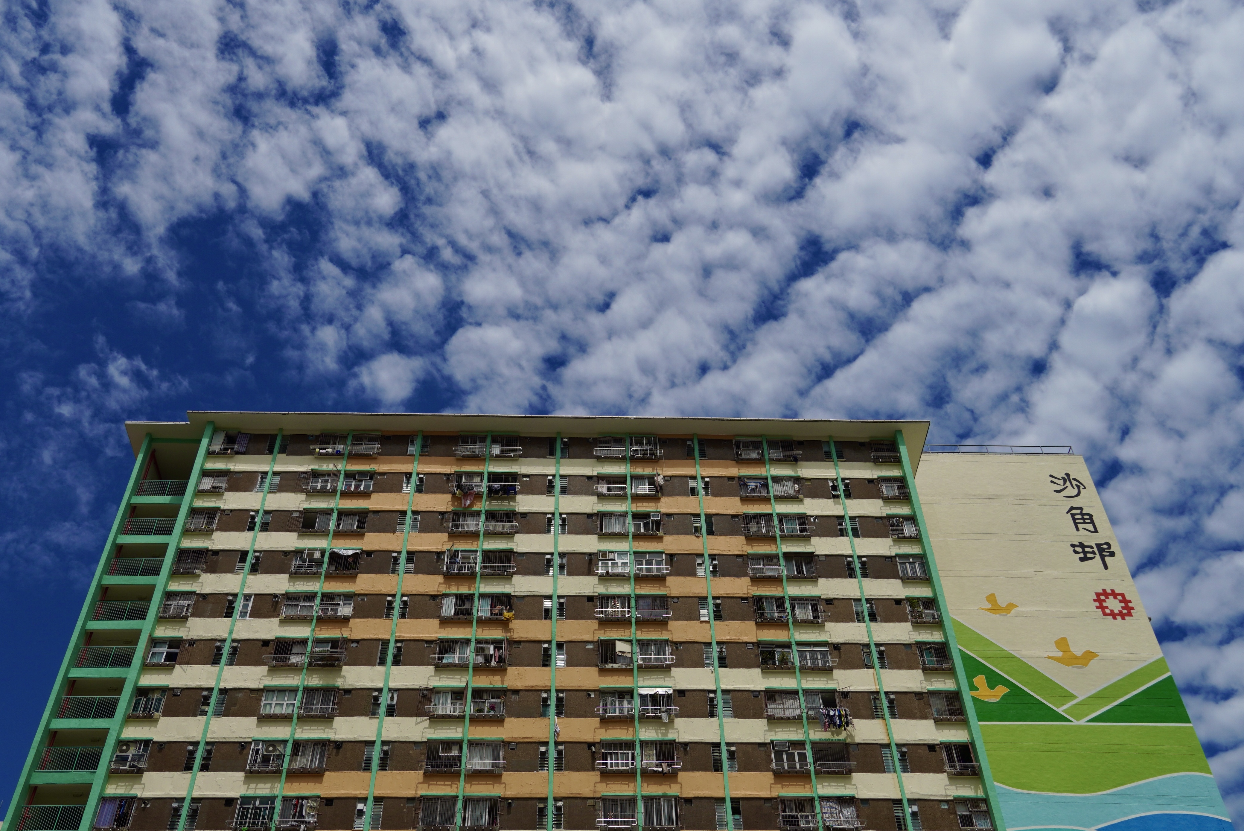 屹立於沙田四十年的沙角邨,邨內七幢大廈均以雀鳥命名。居民遊走在屋村內,只需抬頭一看,便能在平凡的外牆上找到「沙角鳥」的蹤跡。在平淡的日常中,增添一些色彩小樂趣。可惜這些年來,外牆受盡日曬雨淋,一群鮮艷的雀鳥都褪了色。但居民都不會忘記,「沙角鳥」的獨特之處。(记者 馮俊文 攝)