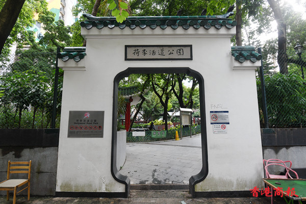 荷李活道公園位於一個濱海小山丘,1841年英軍於該處登錄後, 成為英治初期的砲台和營寨。其後,这里變成擺賣雜貨、飲食、賣藝及遊樂消遣的地方 ,後改建成現在的中式花園。