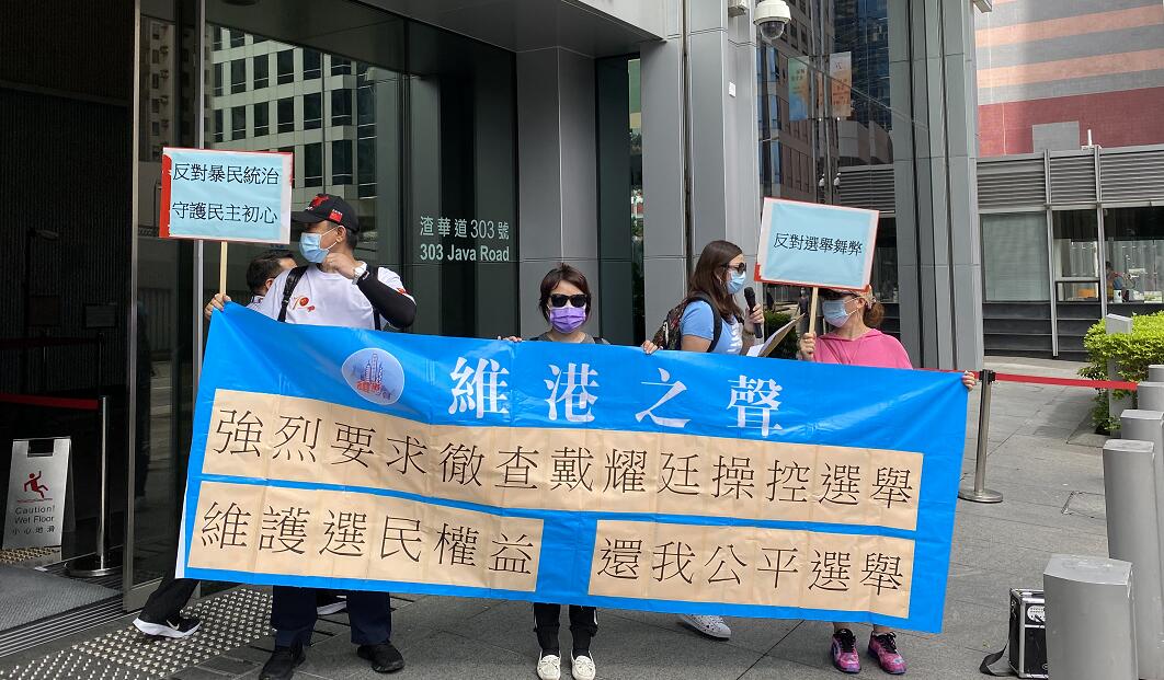 「維港之聲」代表朱小姐表示,任何藉賄略丶武力丶脅迫或欺騙手段以誘使他人參選或不參選的行為,均屬舞弊行為,「初選」除了違反選舉法例,更違反民主之義,通過煽動仇恨,製造社會撕裂,情緒綁架投票,用「攬炒」取代建設,有違民主政制初心。作為一群珍愛香港的市民,對此行徑十分憤怒,要求徹查戴耀廷選舉舞弊,還香港正常政治生態!(記者 李銘欣)
