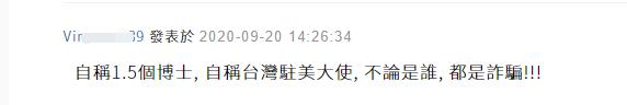 还有网友则对民进党当局开启嘲讽模式:「(蔡英文)自称博士,(萧美琴)自称『台湾驻美大使』,都是诈骗!」