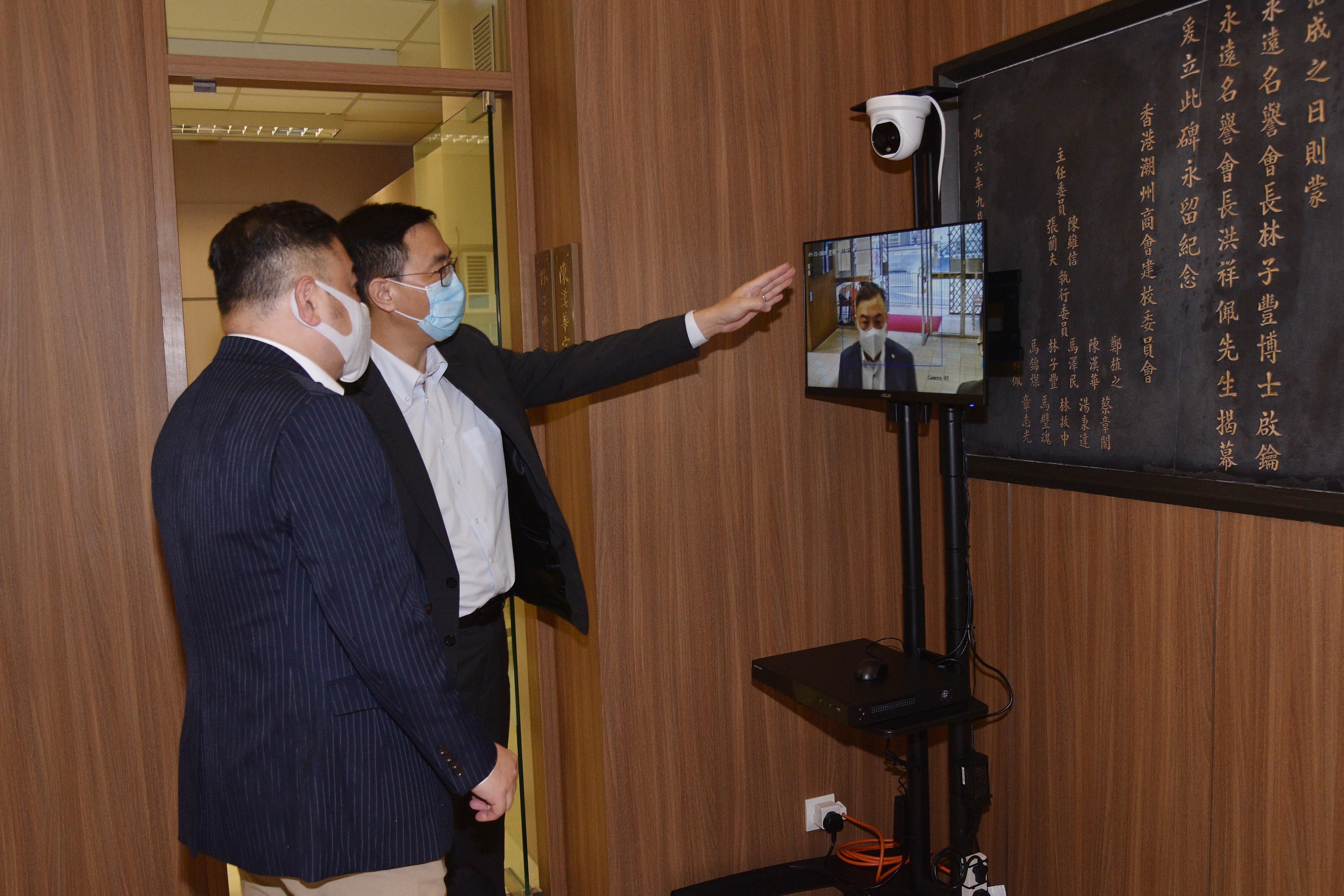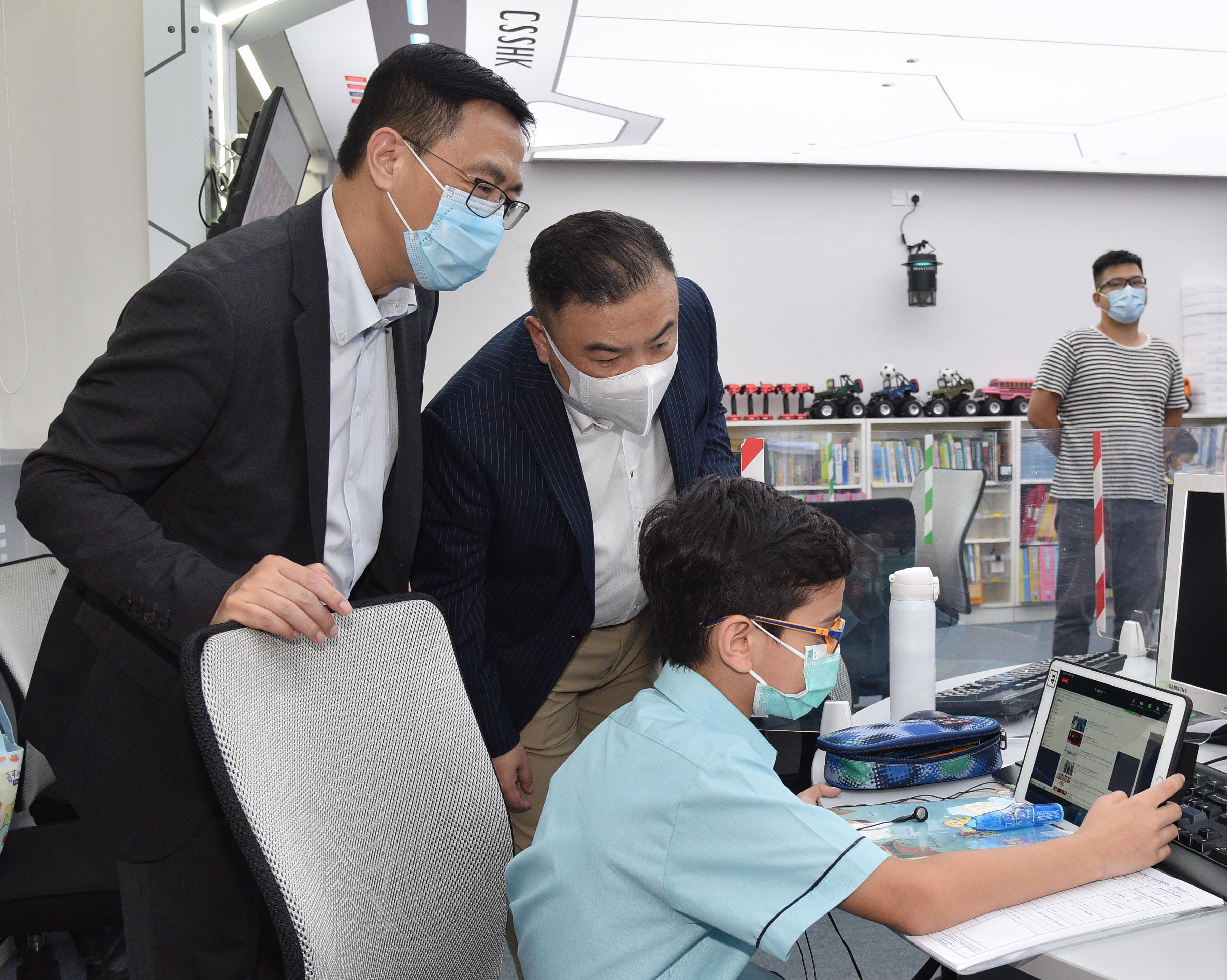 楊潤雄參觀電腦室,了解同學上網課的情況。
