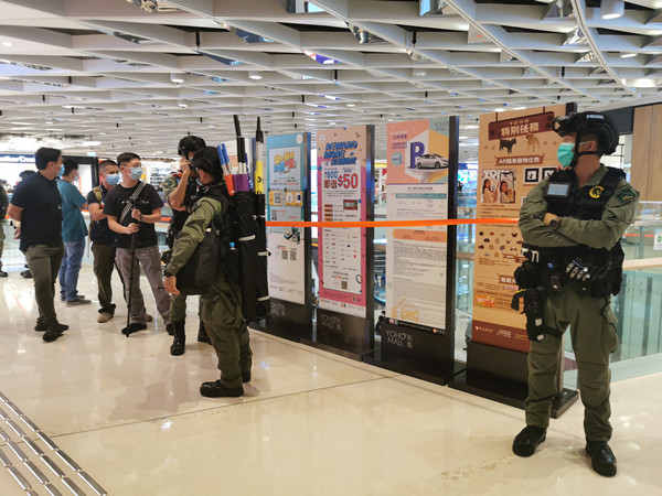 元朗721暴力襲擊事件發生14個月,有網民發起在港鐵元朗站旁的YOHO商場聚集。晚上約7時,商場內有人高叫口號,大批防暴警察進入商場拉起封鎖線,並截查部份在場人士。部份商店落閘。據本報記者了解,現場人不多,警方已發出多張《預防及控制疾病(禁止群組聚集)規例》(第599G章)告票。