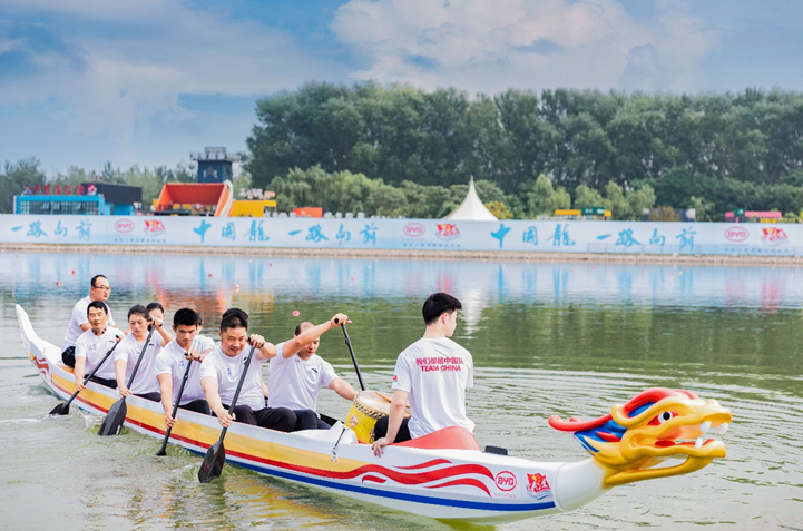 9月21日,「中國龍一路向前——競技龍舟發佈儀式」在北京順義奧林匹克水上公園正式拉開帷幕。符合奧運標準的競技龍舟在本次活動中首度亮相併進行下水測試,這標誌着龍舟入奧的步伐正在顯著加快,這也是自比亞迪成為「龍舟入奧戰略合作夥伴」後,多方攜手共同助力龍舟入奧進程所取得的又一大積極進展。