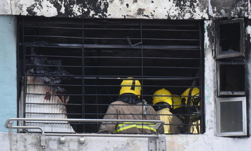 現場消息指,來港兩年的男死者(38歲)疑患有情緒病,火警發生前情緒激動,一度用雜物掟向祖母,她於是到樓下找管理員協助,其後單位起火。(記者萬家成)