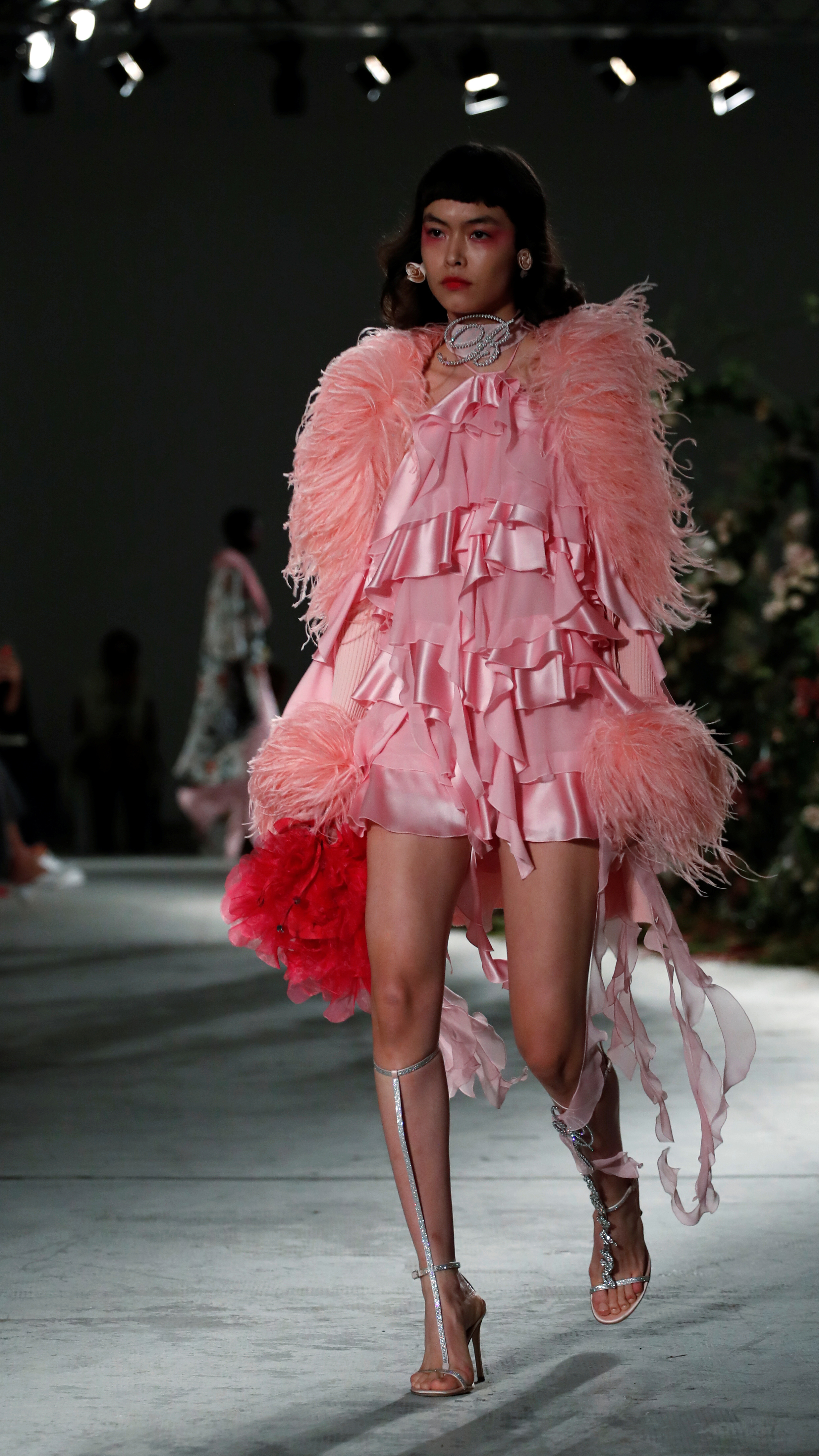 当地时间2020年9月24日,在意大利米兰的时装周上,模特展示了2021春夏女装系列的作品。这个系列的时装,色彩斑斓、造型时尚、充满个性,展示了设计师们对春夏女装流行趋势的前瞻。
