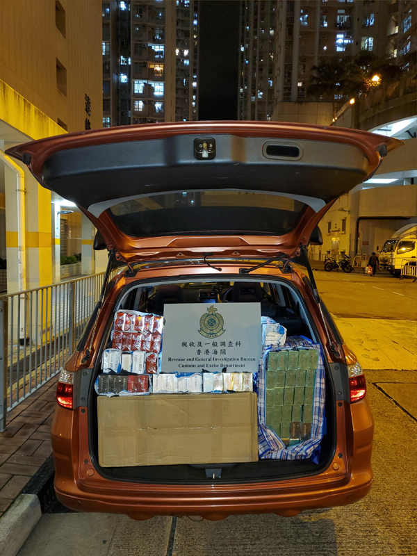 海關在香港仔一個公屋單位內檢獲的懷疑私煙。