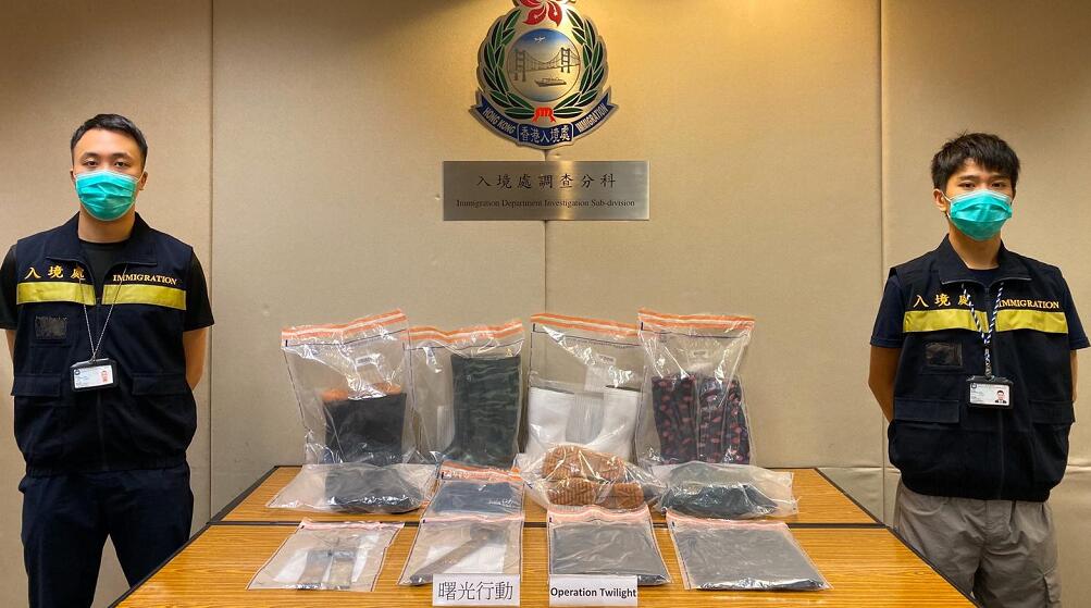 圖為入境處人員展示行動中檢取的證物。