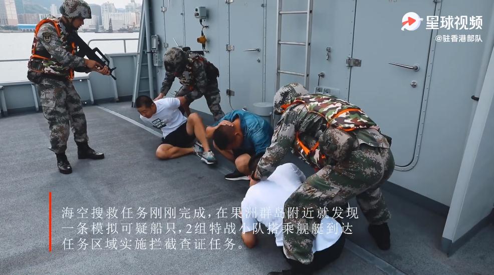 駐港部隊在微博發放演練片段,訓練內容包括在果洲群島附近發現可疑船隻,特戰小隊乘小艇登船截查,制服船上可疑人士等。駐港部隊表示,陸海空三軍部隊展開聯合搜救、海空巡邏、聯合查證、互為對抗等多項實戰化課目演練,全面檢驗駐港部隊履行防務的能力。