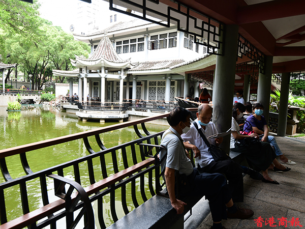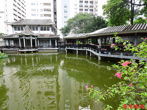 公園現有不同主題花園、錦鯉魚池、小拱橋、九曲橋、蓮花池等,為不少荃灣居民忘憂暫享寧靜的地方。(記者崔俊良 攝)