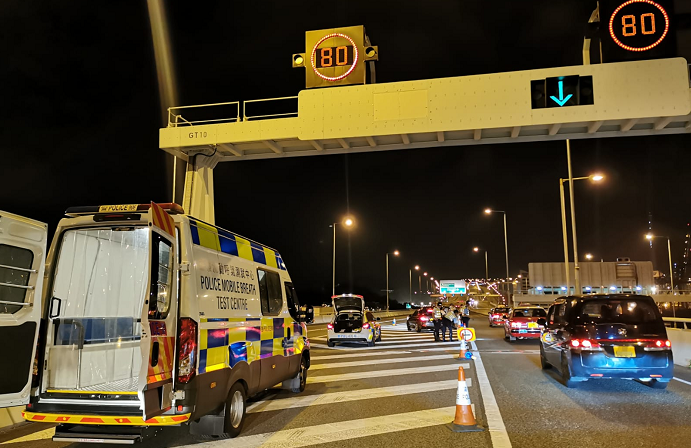 此外,新界南總區交通執行及管制組特遣隊人員在行動中,共要求786名司機進行酒精呼氣測試,其中7名本地男子(28至51歲)、2名非華裔男子(30至32歲)及3名本地女子(37至48歲)未能通過酒精呼氣測試,涉嫌酒後駕駛被捕。另有1名本地男子(57歲)涉嫌拒絕提供呼氣及血液樣本被捕。