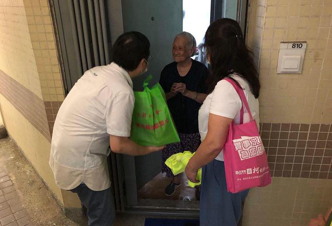 民建聯立法會議員柯創盛聯同「柯家兵團」義工隊上門給長者送贈生活物資。