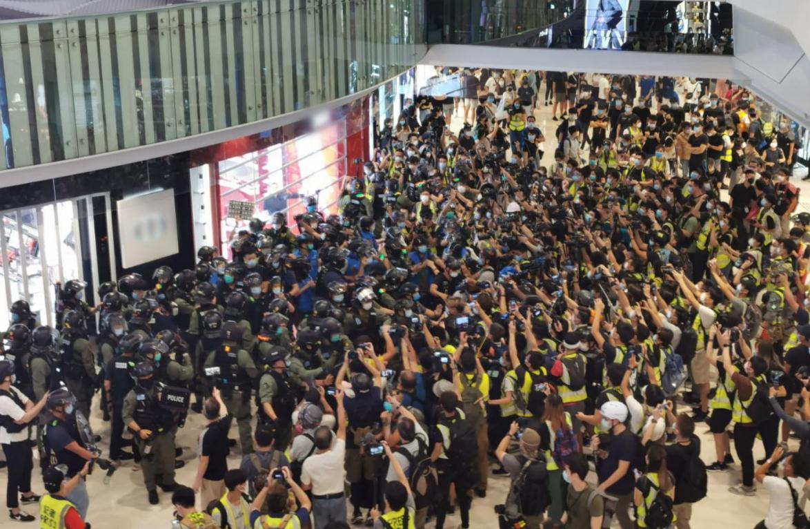 多場示威活動中,大批身穿反光衣人士扮記者「採訪」。
