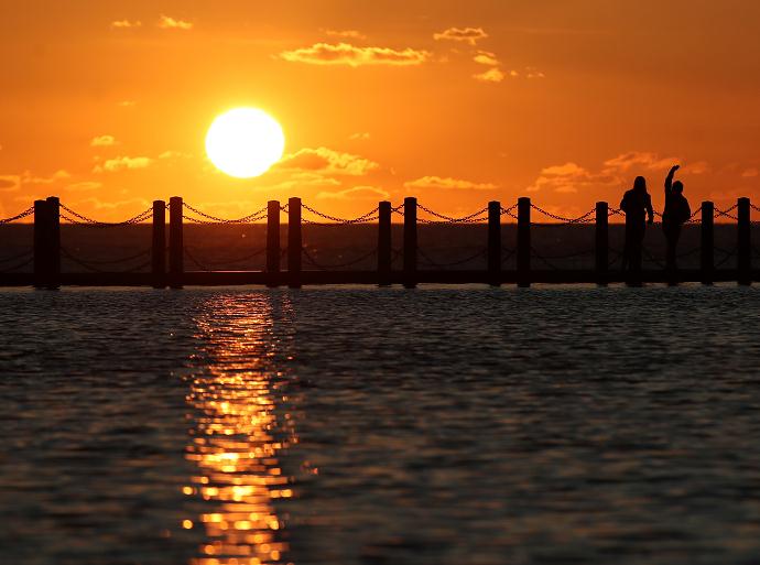 9月26日,人們在布里斯托爾海岸觀賞絢麗的落日。布里斯托爾海峽位於大西洋海灣,在英格蘭西南部和威爾斯南部之間。而布里斯托爾則是英格蘭八大核心城市之一,這裡自中世紀起已是一個重要的商業港口,現今已發展成為英國重要的航天、高科技及金融貿易中心。布里斯托爾是一座充滿朝氣的具有多元文化的城市,也是英國西南部的商業、教育、文化中心。 (圖源:路透社)