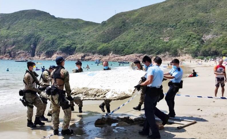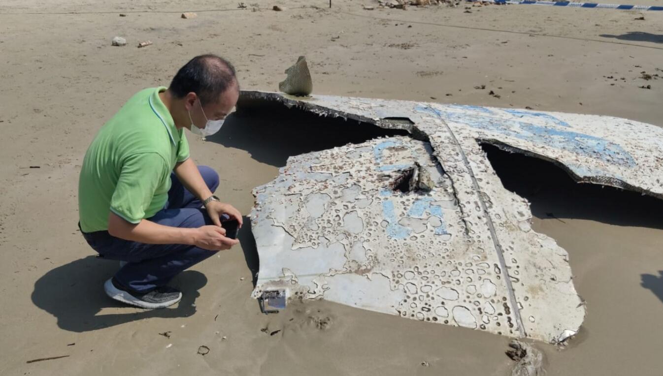 一塊疑似中國長征火箭的整流罩碎片,日前隨水流沖上沙灘。警方4日凌晨派員到場圍起碎片,相關部門早上派員到場檢驗。碎片長闊約2米乘2米,厚度有幾厘米,表面部分已剝落,亦看到蠔殼,中間夾層呈蜂巢狀。碎片有紅漆印著「航向」兩中文字以及「8Y325A-5B S02-01」編號,另中央部分有破損的藍色英文縮寫詞「CMS」,跟中國載人航天計劃(China Manned Space)的英文縮寫吻合,碎片上還有一個藍色的中國載人航天標誌,懷疑是火箭碎片。