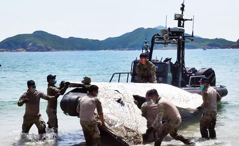 西貢白腊灣發現發現大型金屬塊,懷疑是火箭碎片。漁護署今日早上派員到場了解及視察,警方於中午時分將碎片移上水警快艇運走。有市民拍照留念。