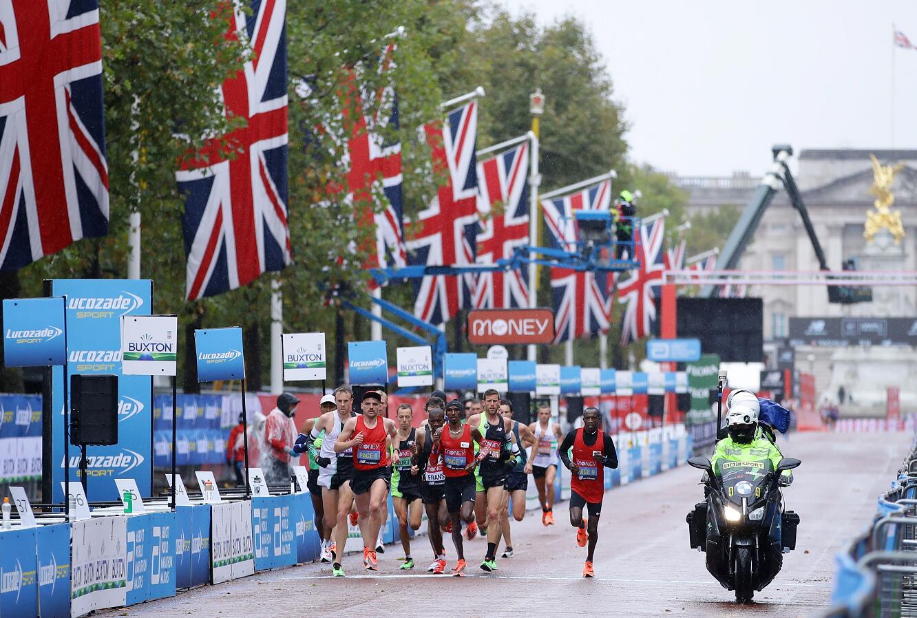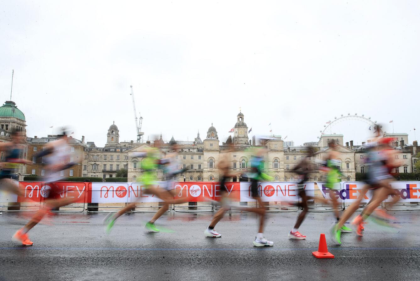 2020倫敦馬拉松周日(4日)舉行,受到疫情影響,今屆賽事只允許100名精英跑手參加。其他大眾跑者可將參賽名額保留至未來三年。今年倫敦馬拉松不用以往的賽道,而是在聖詹姆斯公園的環形賽道上展開角逐。觀眾將不允許入場及沿途觀賽,比賽日當天BBC進行全程直播。(圖源:路透社)