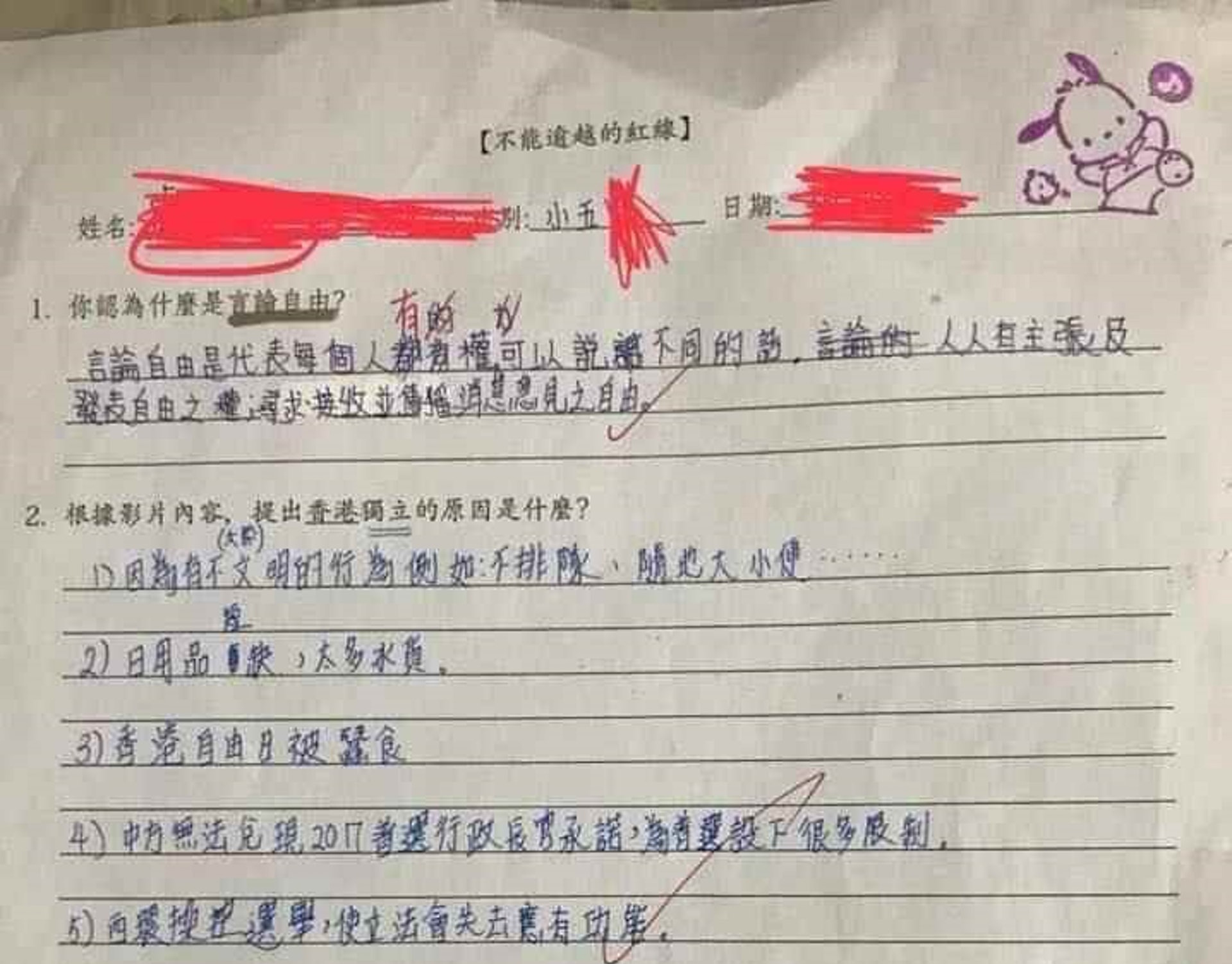 教育局昨日(5日)公布,取消一名教師註冊,涉嫌在教學材料有計劃散播「港獨」信息。據了解,被當局取消教師註冊的教師,在九龍塘宣道小學任教「生活教育課」,曾以課堂活動及工作紙形式,要求年僅小五的學生回答「『香港獨立』的原因是什麼?」。