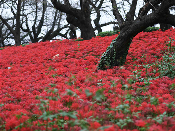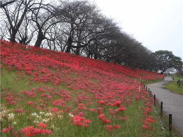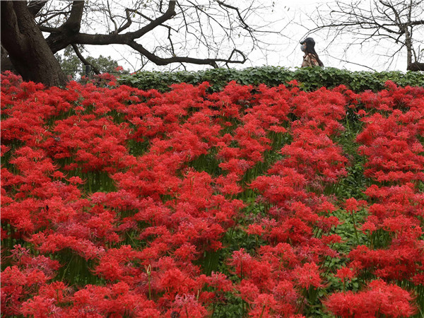 曼珠沙華,是來自於《法華經》中梵語「摩訶曼珠沙華」的音譯,原意為天上之花、大紅花,是天降吉兆四華之一,典稱見此花者,惡自去除。(圖源:新華社)
