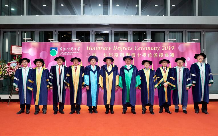 香港公開大學7日舉行2019年度榮譽博士學位頒授典禮,由副校監李業廣博士頒授榮譽博士學位予3位傑出人士,包括世界知名的醫學科學家盧煜明教授、資深會計師楊紹信博士及傑出企業領袖盛智文博士,以表揚他們的卓越成就。