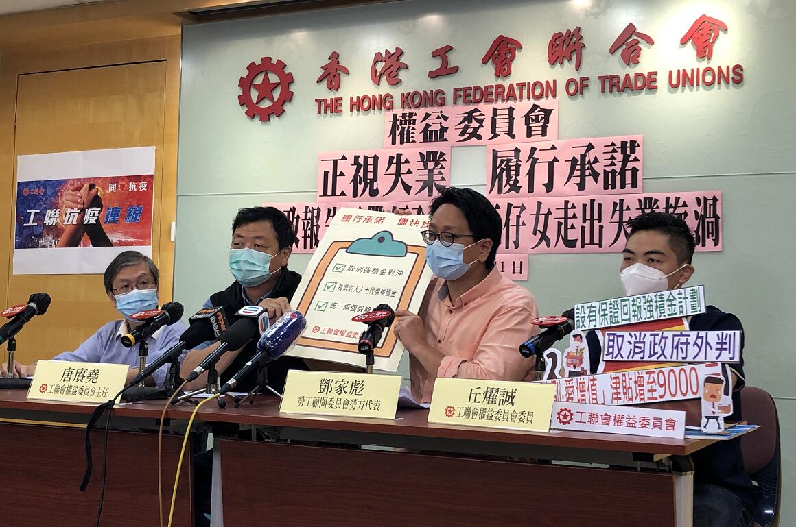 工聯權委指出,自去年年中「黑暴」重創香港經濟,加上新冠肺炎疫情肆虐,目前香港不少失業人士均面對「失業無保障,綜援唔受理」情況,促請政府認清民情,在新一份施政報告中為失業人士和被迫放無薪假的打工仔女,推出失業/停工現金津貼,建議額度為每月9000元,為期6個月,並立即手研究失業援助金以應對未來的長期失業浪潮。