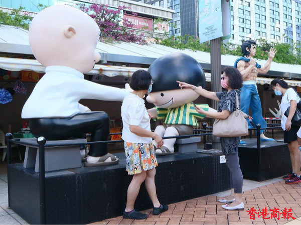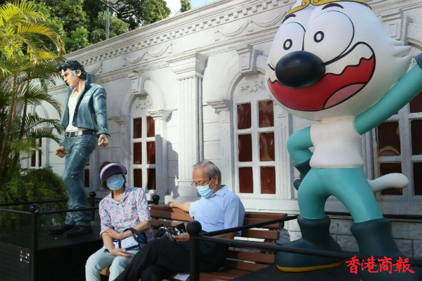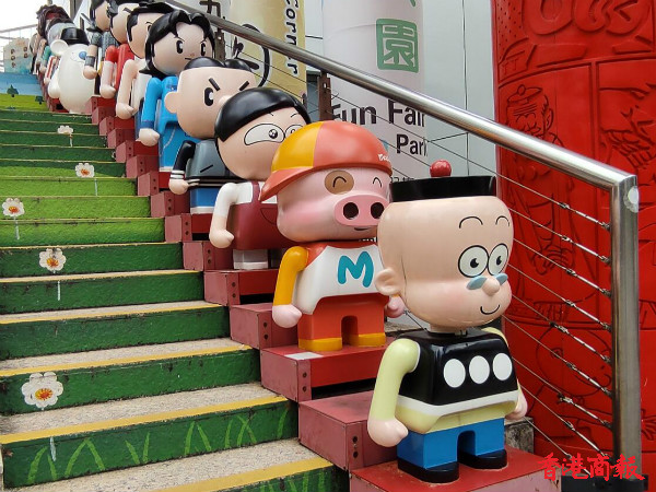 在尖沙咀柏麗大道的九龍公園入口,一批「Q版」漫畫人物雕塑在樓梯兩旁列隊歡迎參觀「漫畫星光大道」的人士。年長一代可以在这里重溫童年時心愛的漫畫角色,年輕一代可以體驗香港的獨有漫畫文化;外地遊客可以瞭解香港文化的多元性。「漫畫星光大道」亦讓九龍公園成為另一個感受到无尽創意的旅遊景點。(馮瀚文 攝)。