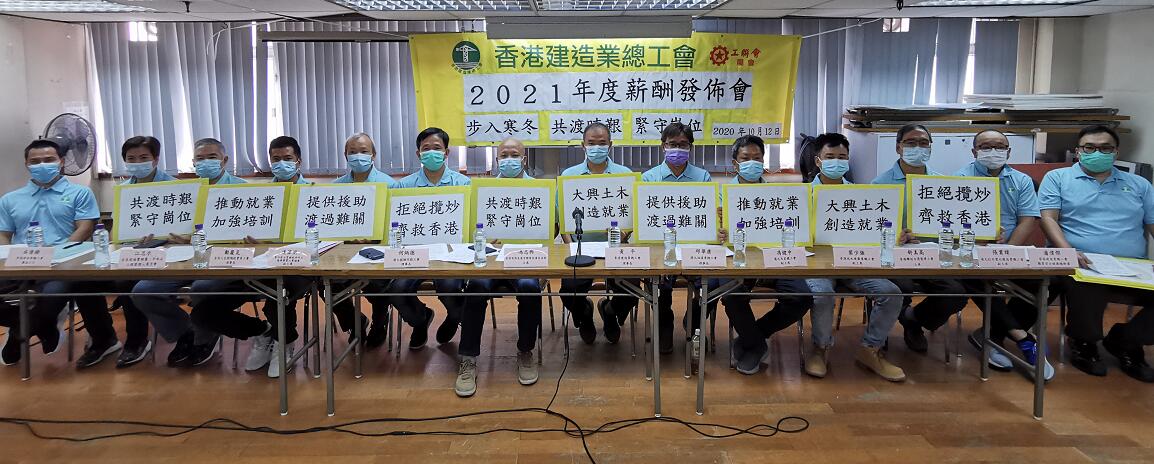 香港建造業在過去一年受到經濟下行的影響,加上立法會的「拉布」、黑暴事件和疫情的「三大夾擊」,重創本港建造業,導致工程項目急劇下降,工人就業情況嚴峻。據政府統計處數字顯示,建造業最新的失業率為11.1%,就業不足率更錄得8.1%,特別在「裝修、維修及保養」範疇上,連續4個月錄得15.9%,建造業步入「寒冬期」。以上數字只是反映業界的一部分。總工會在6至8月進行「建造業工人就業情況」意見調查,成功電話訪問了17481名會員,向會員查詢近日就業情況。調查結果顯示建造業整體失業率為27.8%,和就業不足率為33%。以上統計數字,與工會於2003年「沙士」所做的調查情況相若(分別為22.3%和31.4%)。