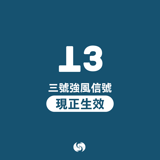 香港天文台於今日(13日)下午7時40分於社交平台宣佈,改掛3號強風訊號,並呼籲市民遠離岸邊,停止水上活動,預料本港平均風速每小時41至62公里。天文台稱,現時風力仍然強勁,請勿鬆懈防風措施。小型船隻現在駛離避風塘仍有危險。(記者 唐信恆、何家驊)