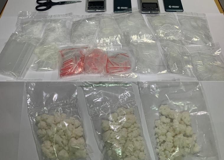 人員其後在該名28歲男子位於上址的住所內檢獲約87克的懷疑霹靂可卡因。該兩名男子涉嫌販毒被捕,現正被扣留調查。行動中檢獲毒品總市值約32萬元。